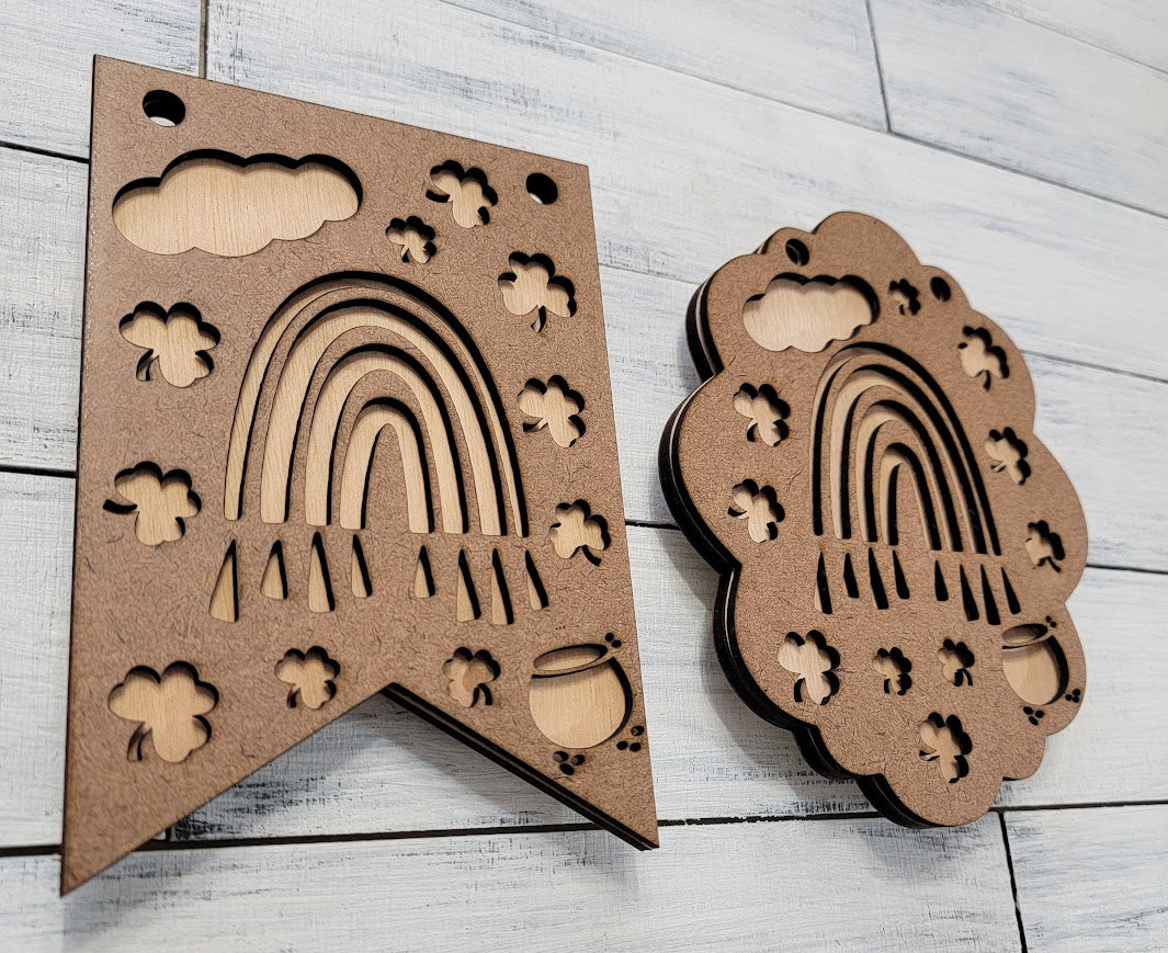 Stupid-Cute leprechaun, shamrocks, rainbow & themed overlay.